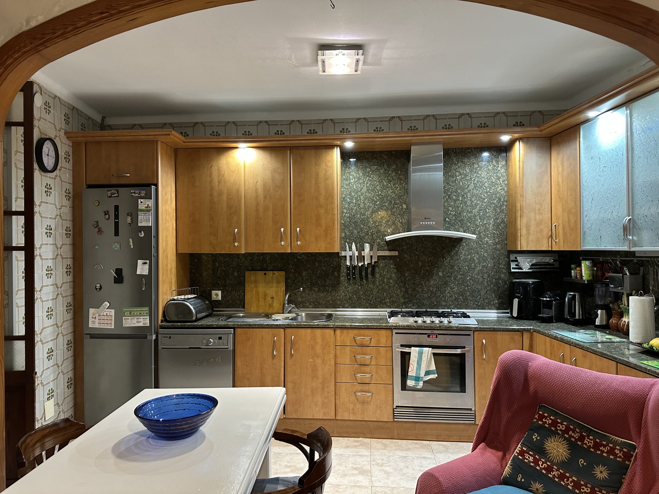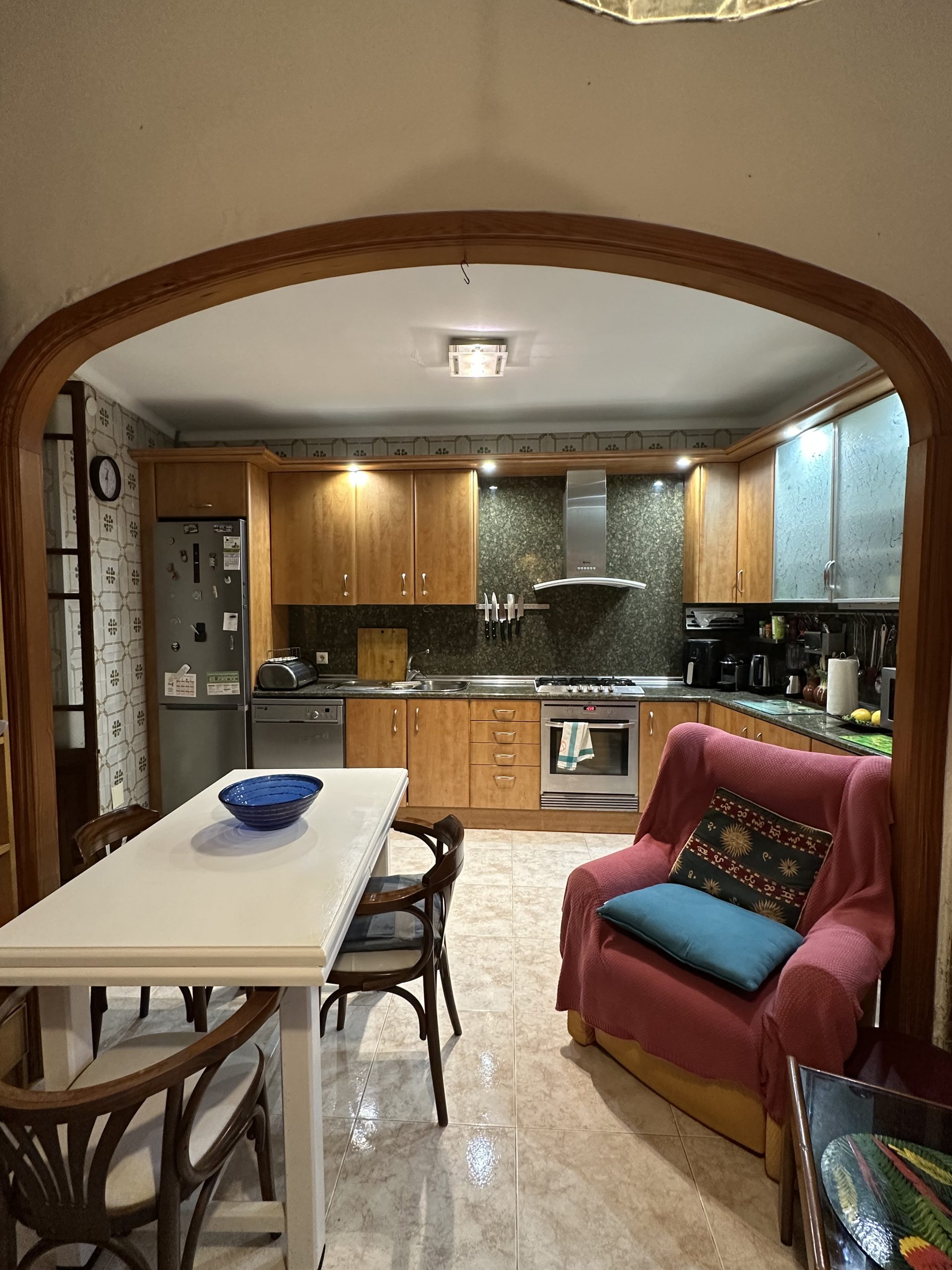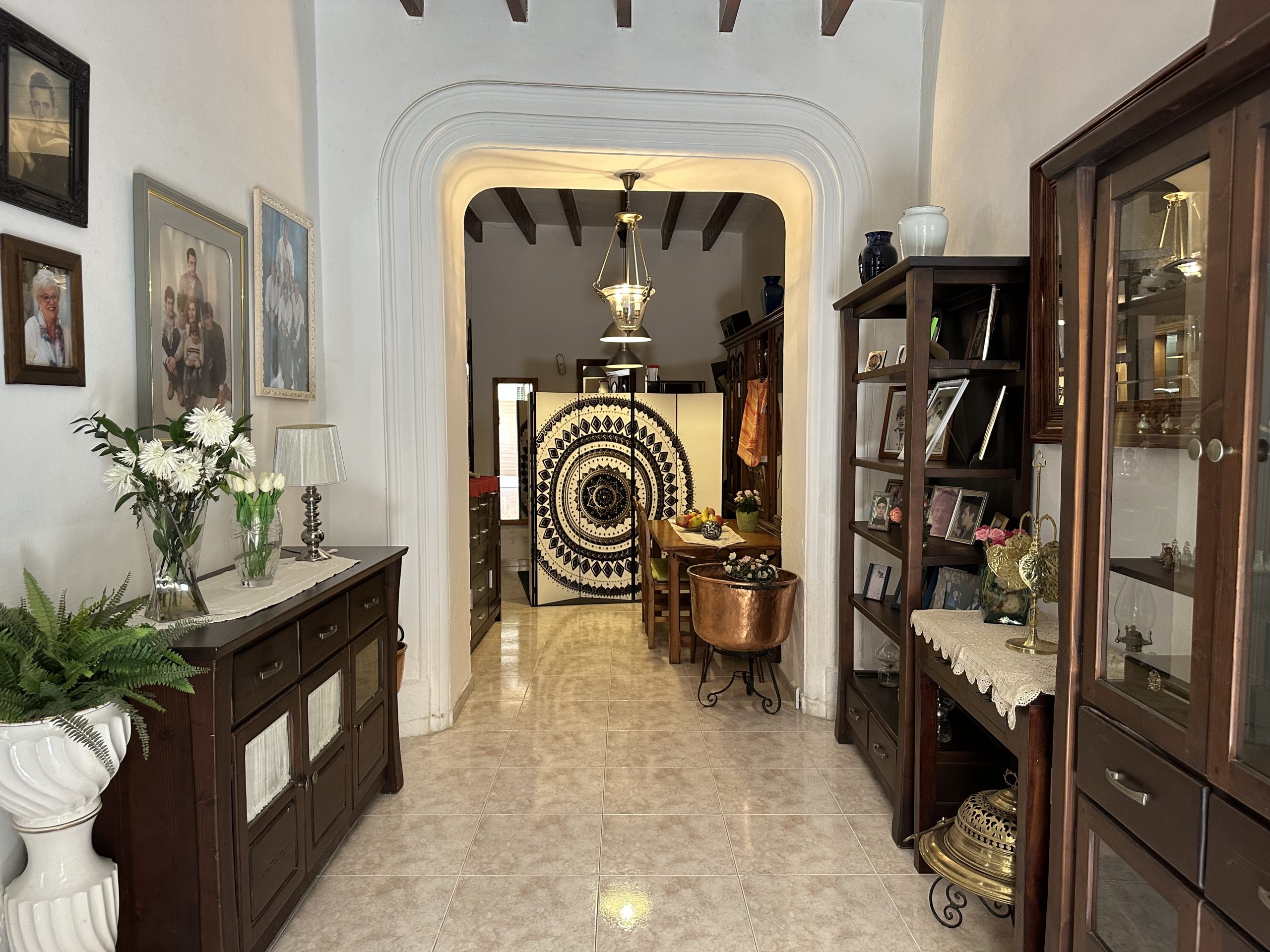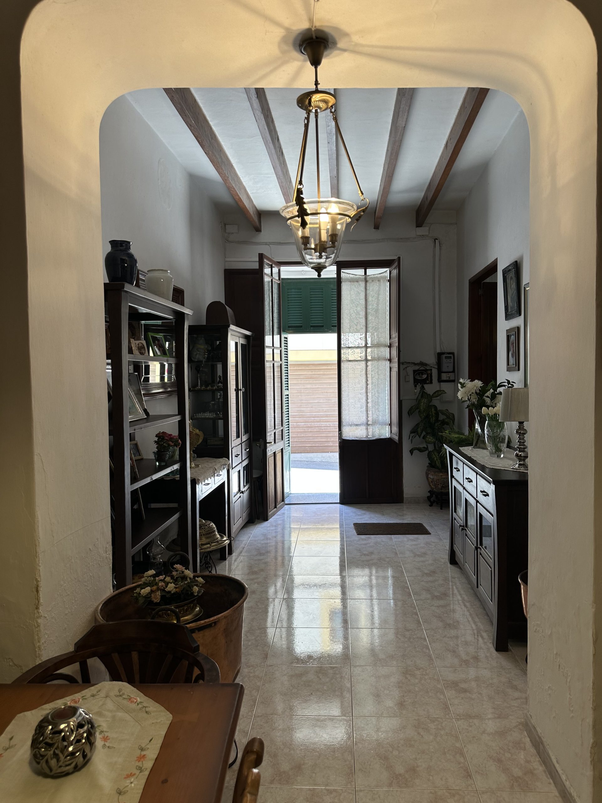 The small town of Felanitx, free from tourist hustle and bustle, reflects everyday life in Mallorca with its numerous shops and offices. Every Sunday, a large market takes place here, with a wide variety of stalls stretching across the entire town centre.The nearby Porto Colom offers various shopping opportunities, bars and restaurants. Porto Colom is one of the most beautiful fishing villages in the south-east of Mallorca. It captivates with its charm, its bays, the harbour area and also its cosiness and tranquillity.The nearest beach can be reached in about 15 minutes. The 18-hole Vall d’Or golf course is about a 10-minute drive away. The island’s capital, Palma, and the airport can be reached in about 40 minutes.The house is located in a quiet and sunny side street in Felanitx. The surrounding area is characterised by village charm, well-kept neighbouring houses and lots of greenery.