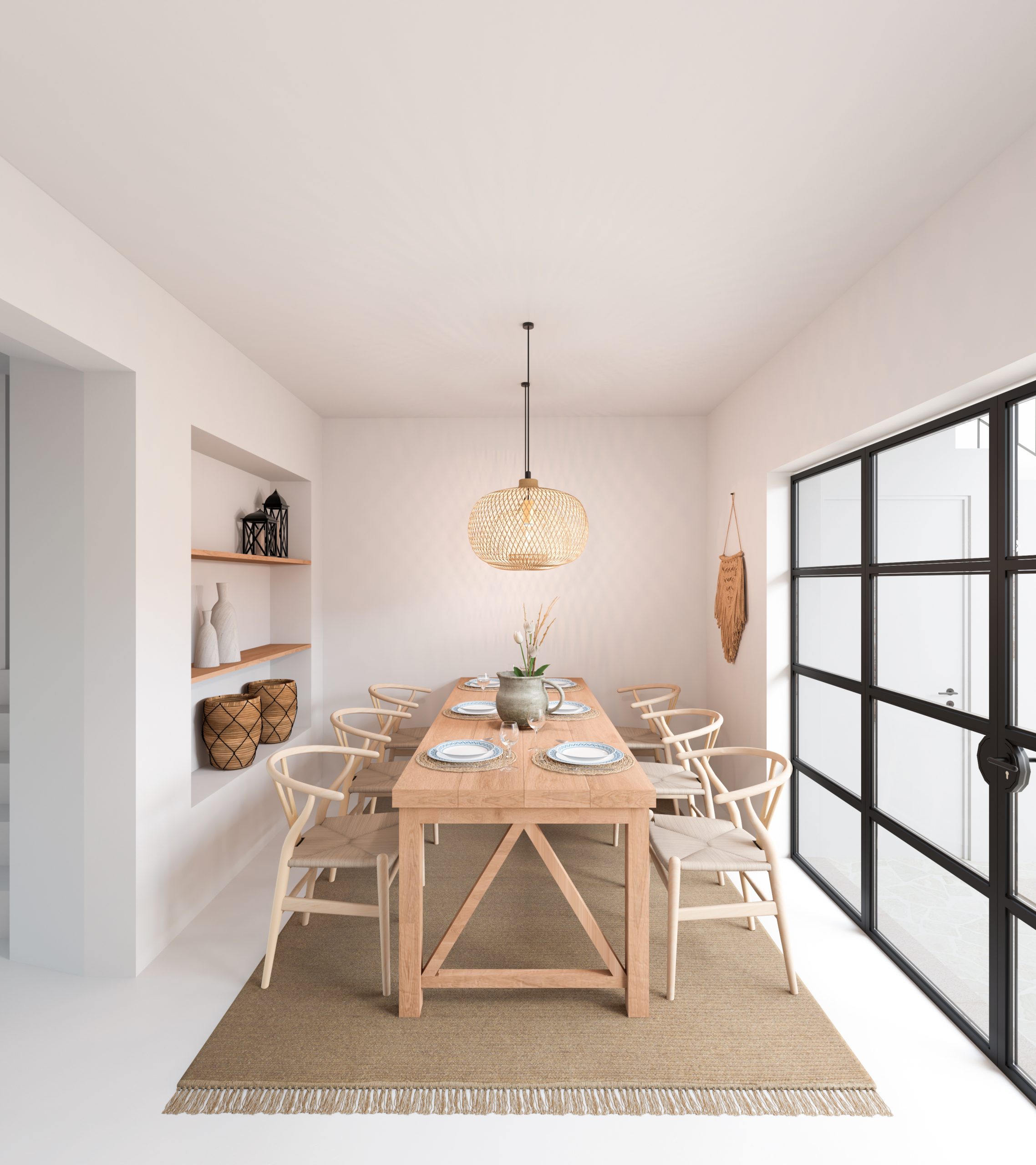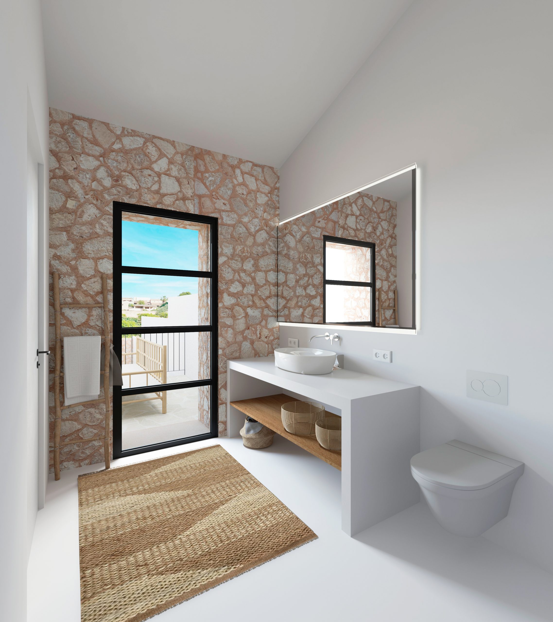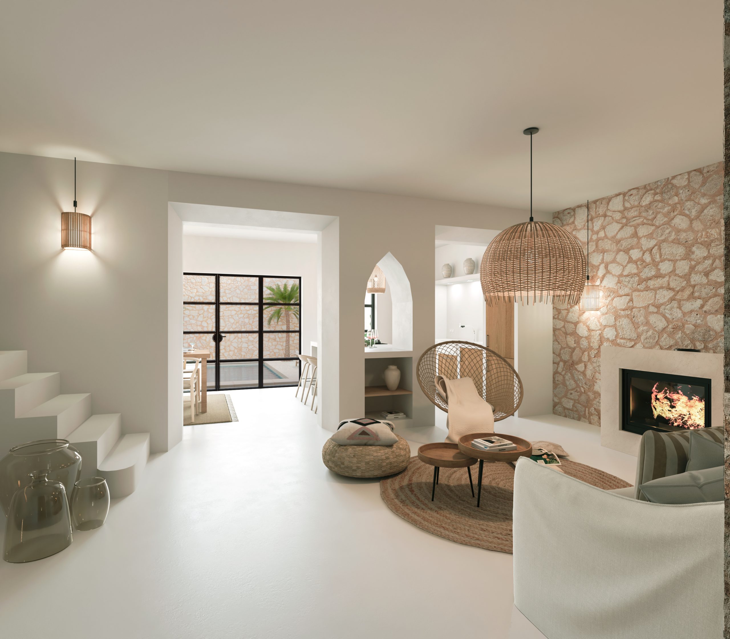 This tastefully renovated village house impresses with its elegant and luxurious interior. Expected to be completed in early 2024, the house was originally built in 1890, is located in a quiet side street and is ideally orientated to enjoy the sun all day long. The view from the terrace is magnificent. You look out onto a green patio full of citrus trees and the beautiful churches of Porreres, an absolute highlight not only in the evening. Views from the living area to the patio with the turquoise-coloured pool make you want more.