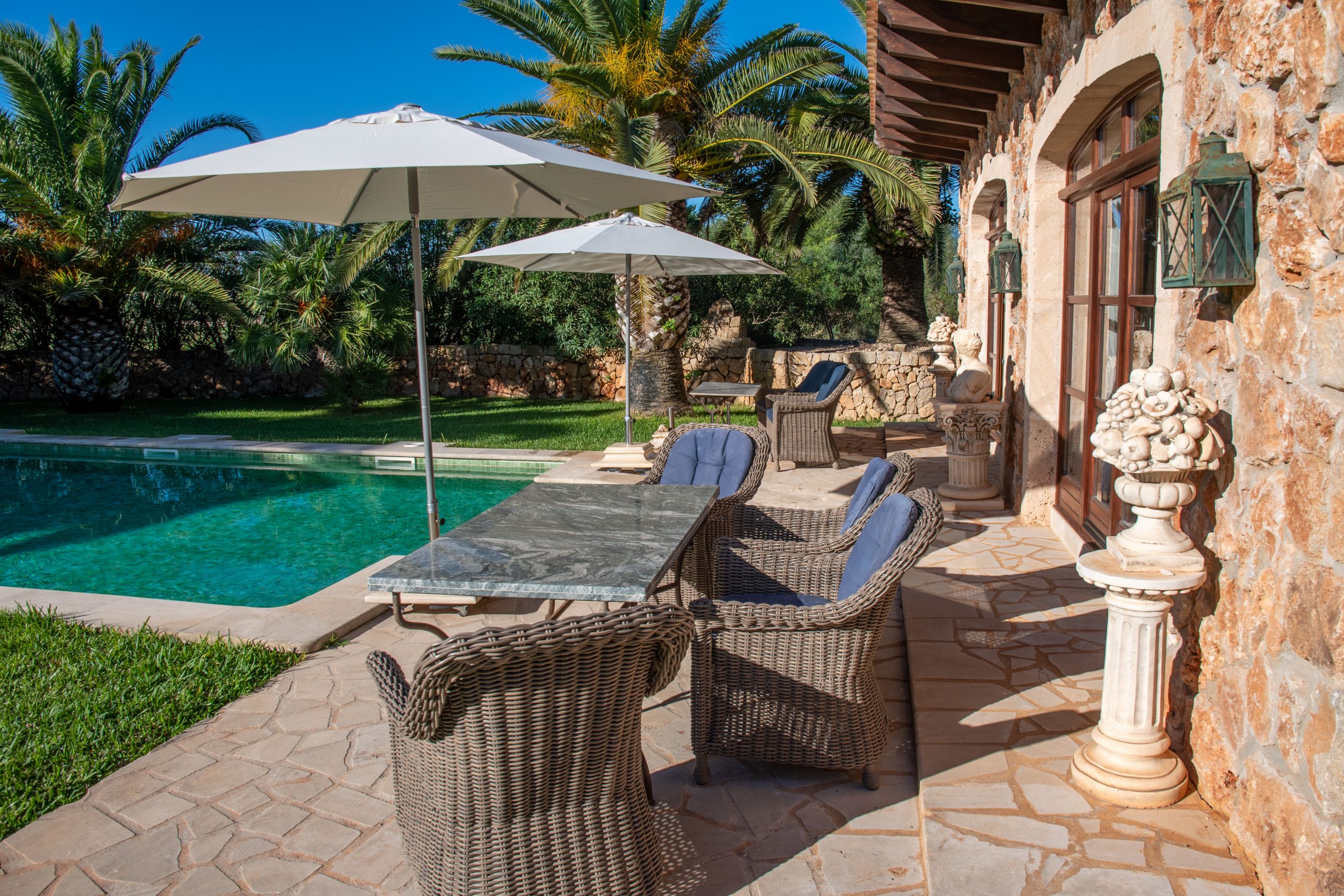 Mit viel Liebe zum Detail und unter Verwendung der besten landestypischen Materialien wurde diese Finca gemäß höchsten Anforderungen an Isolierung und Wärmedämmung und mit der typischen mallorquinischen Steinverkleidung gebaut. Bereits auf den ersten Blick begeistern der Charakter und traditionelle Charme des Hauses und die weitläufige Garten– und Terrassenanlage.