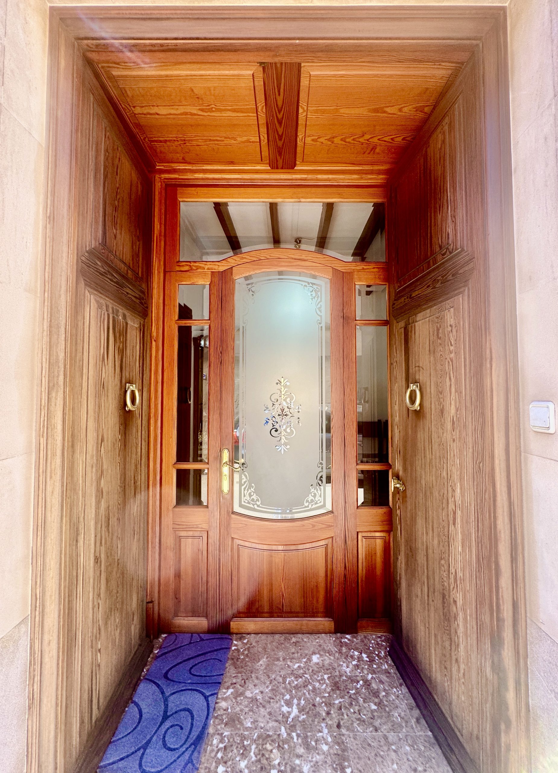 Das Haus ist lichtdurchflutet und verfügt über hohe Decken, die den Räumen Großzügigkeit und Eleganz verleihen. Stilvolle Holzelemente aus Echtholz sowie ein gelungener Mix aus Fliesenböden und Parkett schaffen eine warme Wohnatmosphäre.